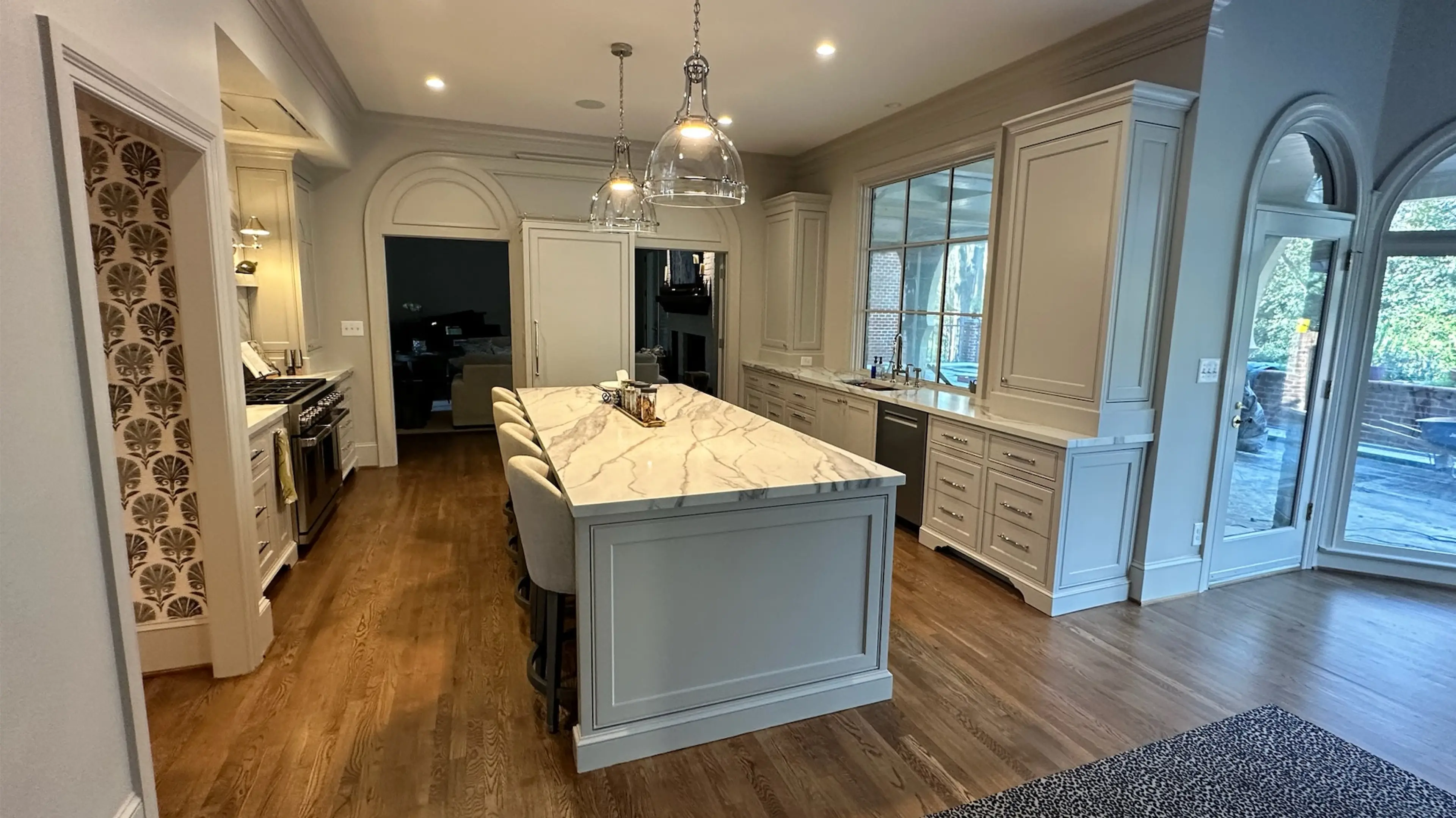 A full SouthPark renovation featuring a redesigned kitchen, custom bar, walk-in pantry, and a reimagined front entry with bespoke foyer openings. The rear covered porch was also transformed with new flooring and added skylights for enhanced natural light